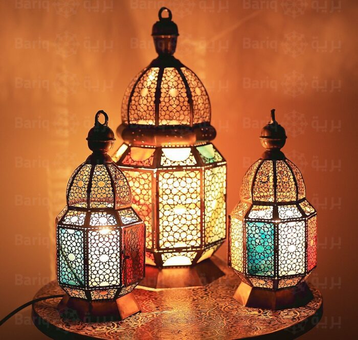 طقم 3 فوانيس نحاس وألبستر