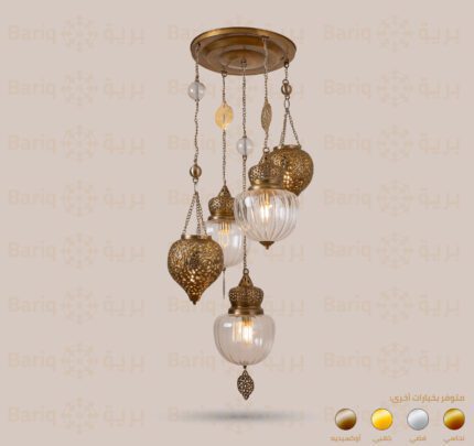 نجفة نحاس وزجاج بايركس – 6 دلايات